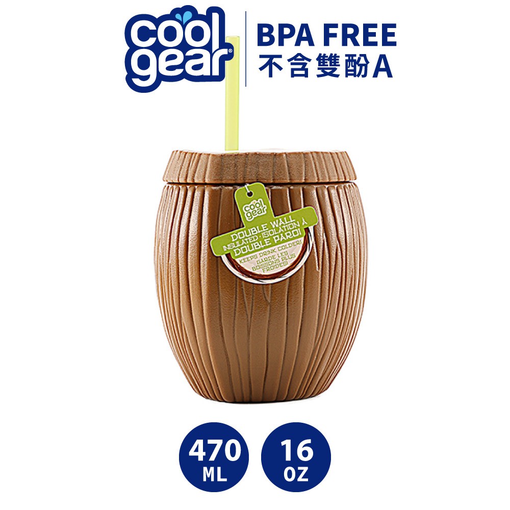 美國Cool Gear酷樂椰子造型吸管杯|雙層真空防側漏防滑吸管飲料杯果汁杯保溫保冰470ml