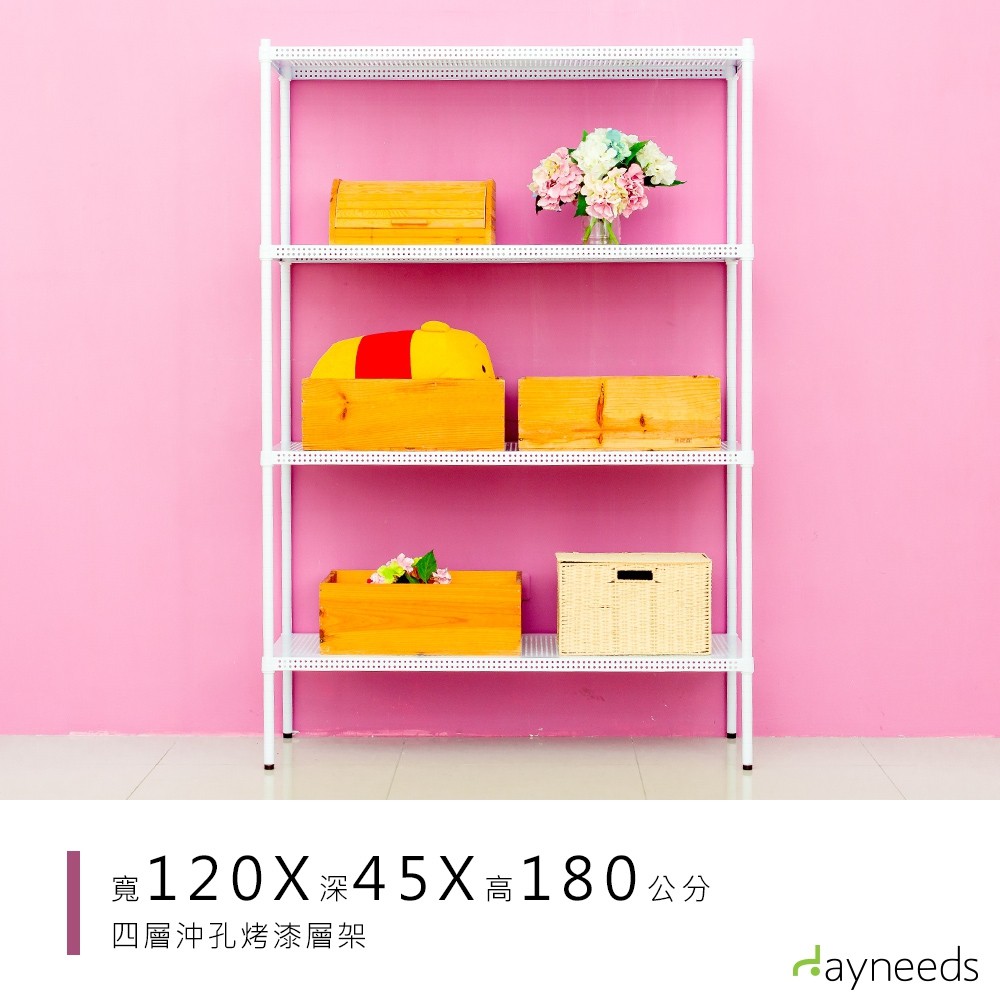 dayneeds 沖孔四層置物架120x45x180公分(烤漆白)層架 置物架 鐵架 收納層架 鐵力士架 收納架 廚房架