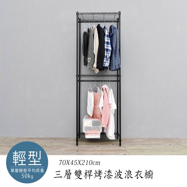 dayneeds 三層雙桿衣櫥架70x45x210公分(烤漆兩色)收納架鐵力士架 收納架 廚房架 置物櫃黑色|白色Wardrobesdayneeds收納生活館