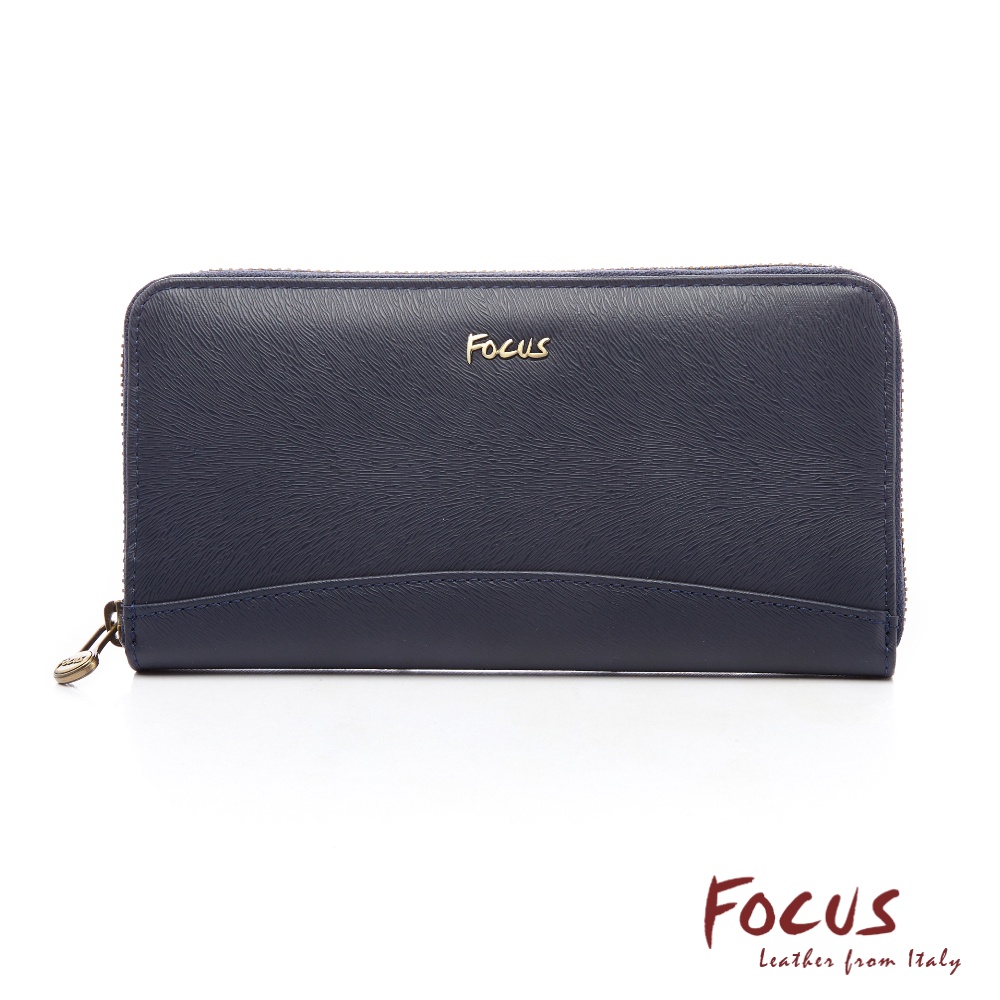 【FOCUS】真皮RFID防盜多功能8卡造型大零錢袋長夾-馬毛紋藍(FLC3673)