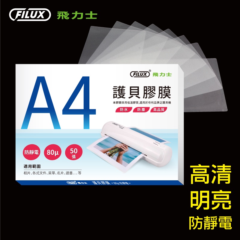 【FILUX 飛力士】50張高清明亮防靜電A4護貝膠膜 (盒裝)【優選特惠】