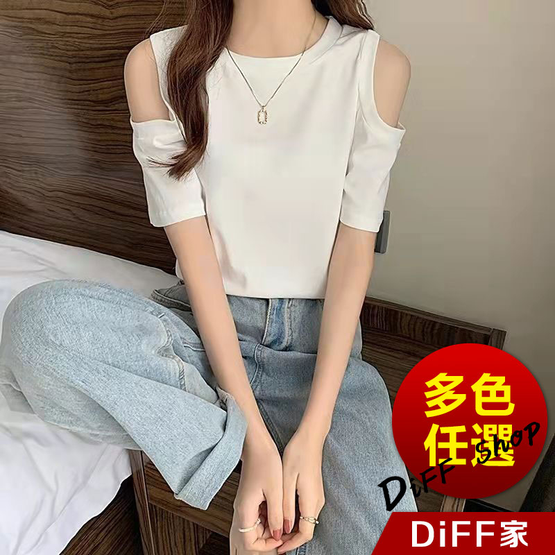 【DIFF】韓版顯瘦露肩短袖上衣 短袖t恤 女裝 顯瘦上衣 衣服 寬鬆上衣 素T【T580】【T580】白色|【T580】黑色T-shirtsDiFF shop