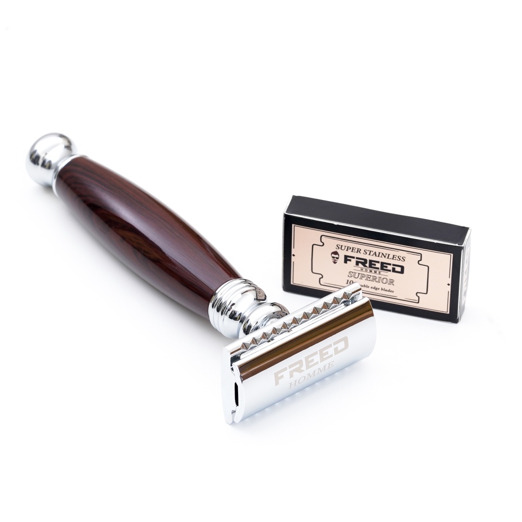 【FREED】封閉式復古雙刃安全刮鬍刀- 仿紫紅檀木 (附刀片10片) 現貨 父親節 七夕 生日禮物 男友禮物 客製化不需要刻字|加購刻字(390元)Shaving & GroomingFREED男士刮鬍刀第一品牌