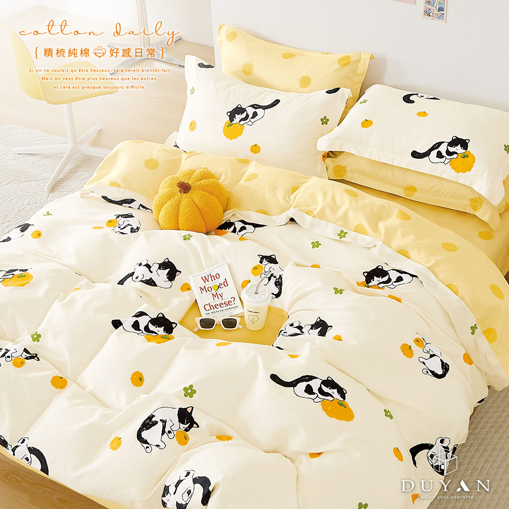DUYAN竹漾 【北歐生活設計】100%精梳純棉床包被套/鋪棉兩用被組-喵喵南瓜 台灣製雙人四件式鋪棉兩用被床包組|雙人加大四件式鋪棉兩用被床包組|雙人床包三件組|雙人床包被套四件組|單人床包被套三件組|雙人加大床包被套四件組|單人三件式鋪棉兩用被床包組|單人床包二件組|雙人加大床包三件組Bedsheets, Pillowcases & Bolster CasesDUYAN竹漾寢飾│網路寢具第一品牌