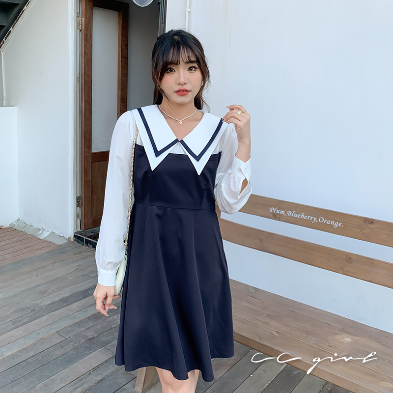 CCGIRL中大尺碼 精緻高雅學院風雙層大翻領小清新洋裝 -共2色-適L~5L《 31647 》大尺碼女裝 中大尺碼洋裝