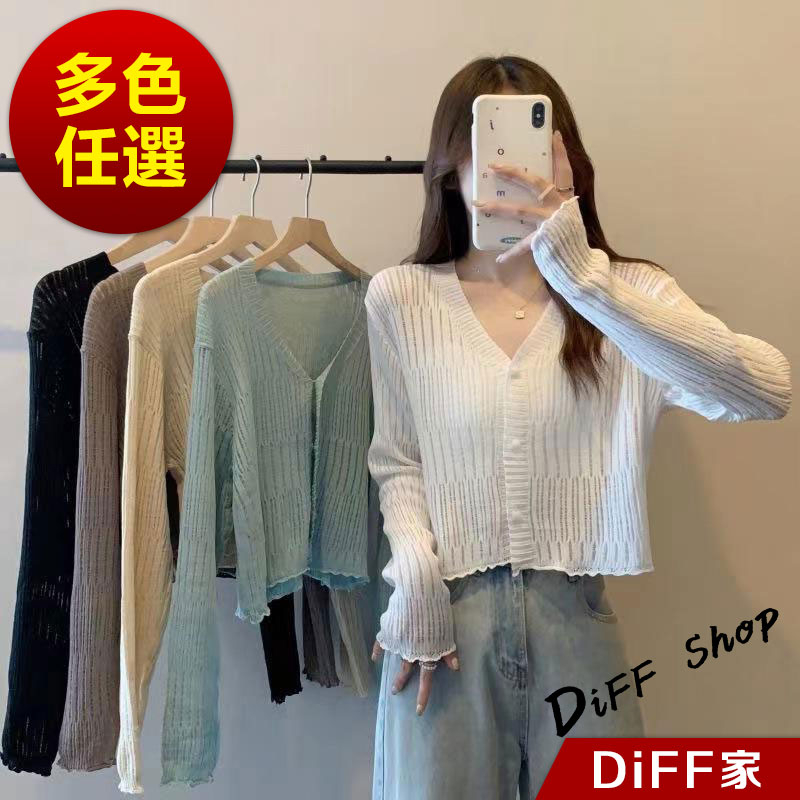 【DIFF】韓版V領冰絲薄款針織外套 短版外套 短版上衣 防曬外套 長袖上衣 女裝 衣服 薄外套 【J278】【J278】黑色|【J278】白色|【J278】藍色|【J278】咖啡|【J278】杏色DiFF shop