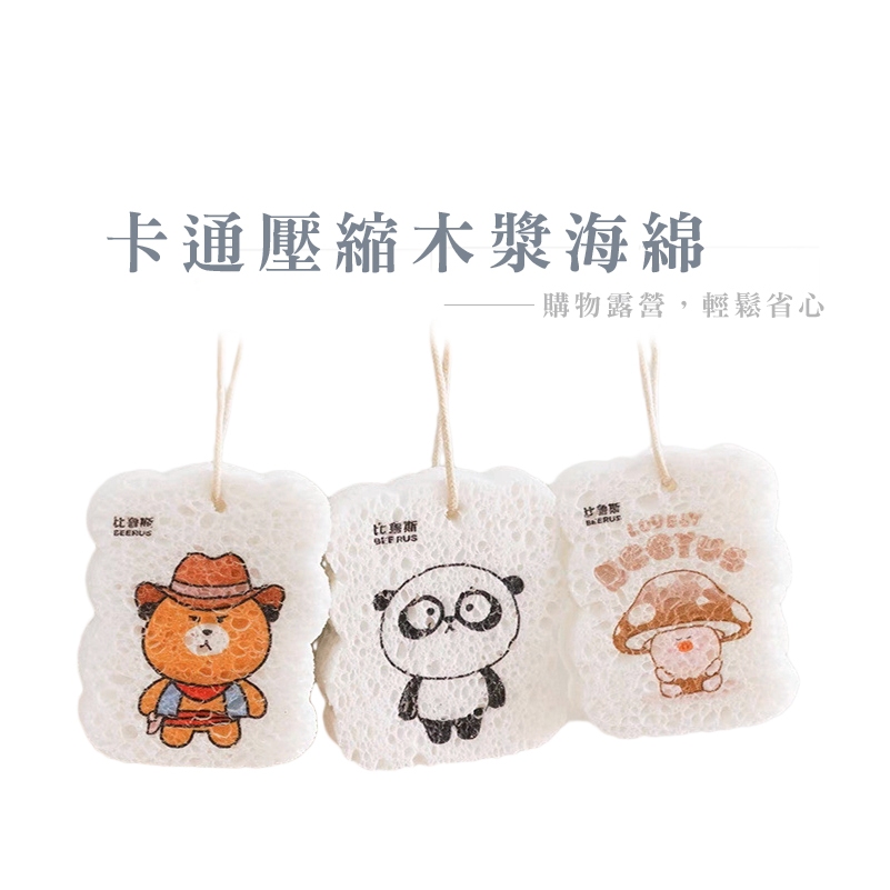 壓縮木漿海綿 卡通造型木漿棉 海綿擦 洗碗刷 菜瓜布 吸水海棉 洗碗布 沐浴棉 吸水棉 洗碗海綿_B401木漿-卡通款(隨機) Sponges & Scouring PadsFS生活品專賣