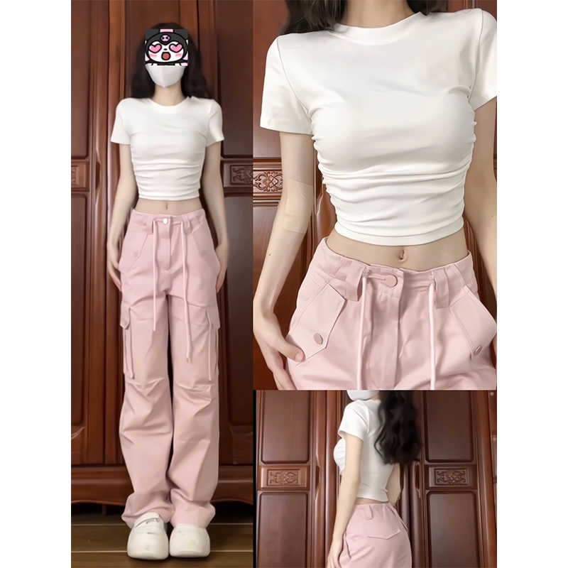 奶甜少女~ 短版上衣 純欲上衣 短袖 韓系短袖 少女衣服 超短版上衣 純慾 辣妹 露肚上衣 落肩短t 顯胸上衣