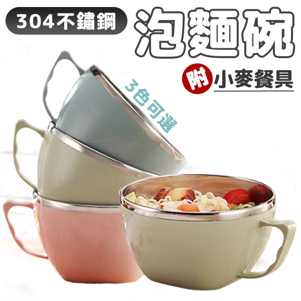 韓式泡麵碗 304不鏽鋼 900ml 泡麵碗 送小麥環保餐具組 保鮮碗 草本風 大容量 雙層隔熱 密封 方便麵碗 便當盒粉+小麥餐具|藍+小麥餐具|綠+小麥餐具Food StorageDA量販店