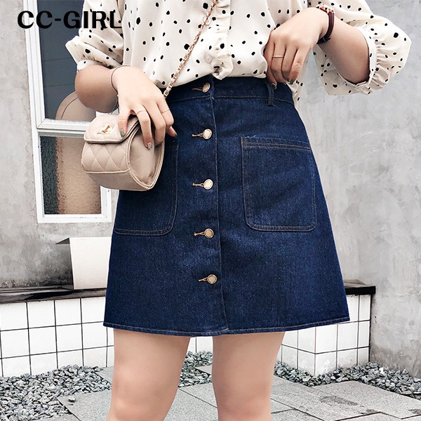 CCGIRL中大尺碼 經典排釦牛仔短裙(有後鬆緊+無一般內裡)-適M~5L《2168》大尺碼女裝 中大尺碼短裙XL|2L|3L|4L|5L|L|MCCGIRL中大尺碼女裝