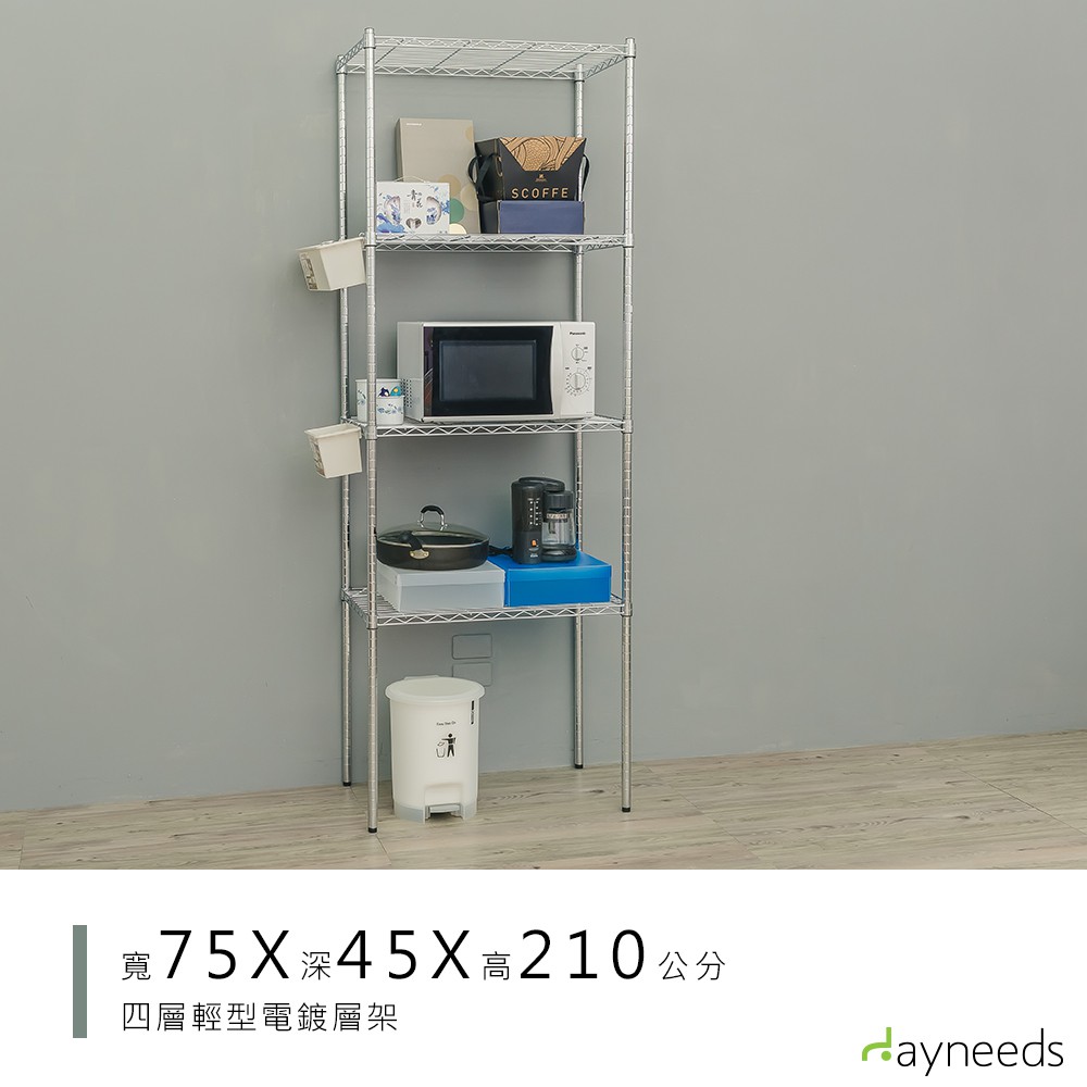 dayneeds 輕型四層置物架75x45x210公分(電鍍插管)層架 鐵力士架 收納架 廚房架 置物櫃