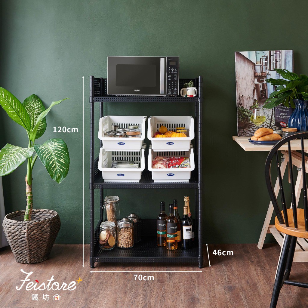 【鐵坊家具】HAP電器三層架/含收納盒 鐵架 貨架 鐵力士 收納 置物 波浪架 展示架 層架 鍍鉻架 組合架 工業風黑色|白色|香檳Cupboards & CabinetsFeistore 鐵坊家具/鐵架收納