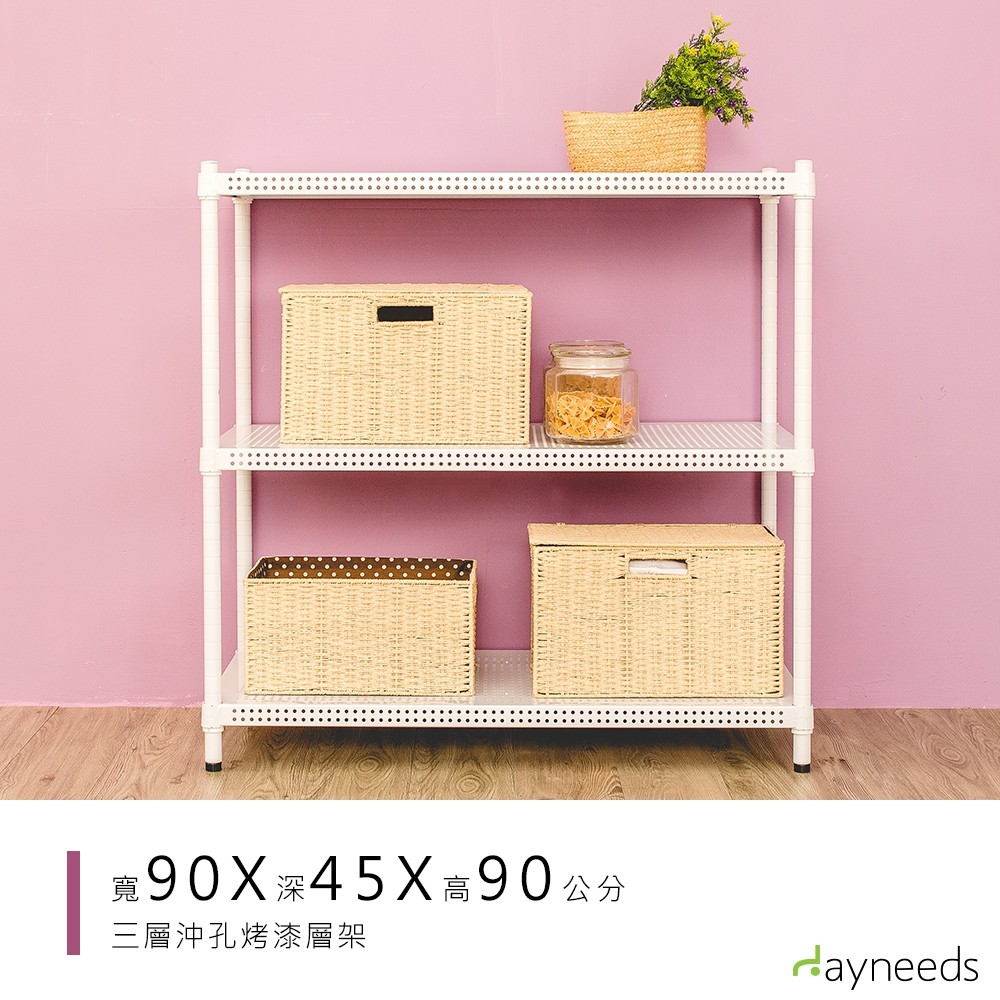 dayneeds 沖孔三層置物架90x45x90公分(烤漆白)沖孔架 耐荷重 可調整 家具 DIY架子 沖孔板鐵架