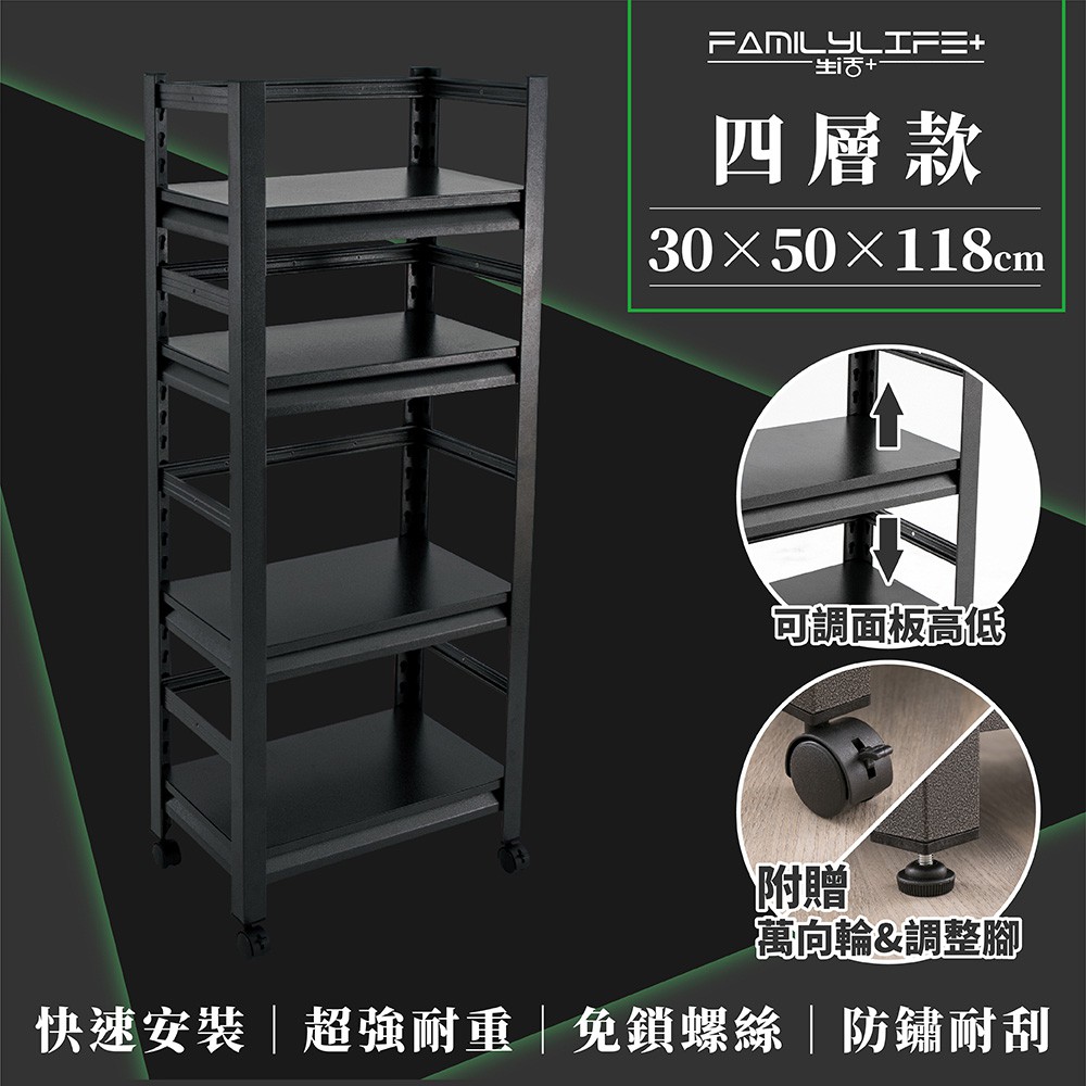 【FL生活+】快裝式岩熔碳鋼四層耐重置物架(FL-263)30x50x118公分 免螺絲角鋼架 展示 層架 廚房層架四層置物架-30*50*118公分Shelves & RacksFL生活+ 官方直營旗艦店