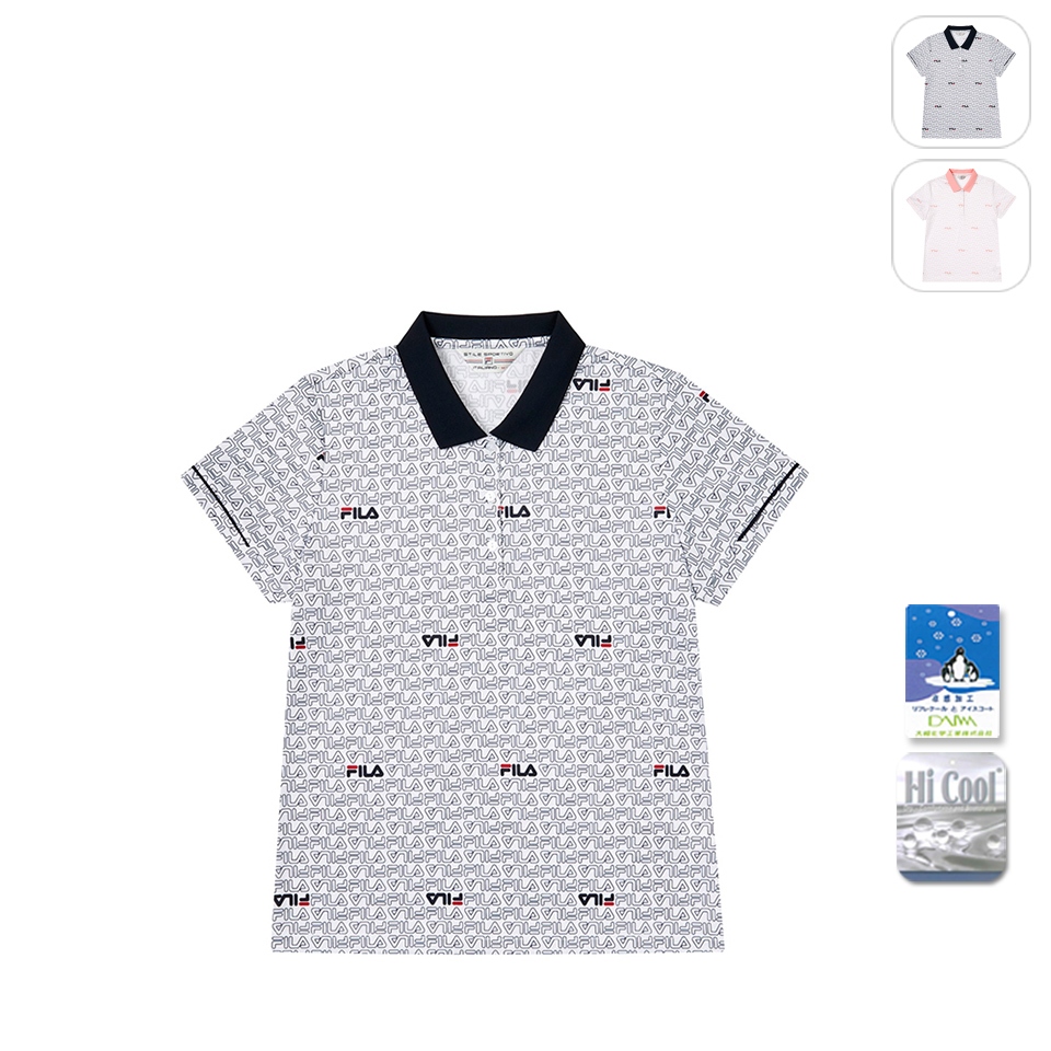 【FILA】女性 滿版LOGO 吸濕排汗 短袖POLO衫-丈青 5POY-1724-WTS|M|L|XL|2XLT-shirtsFILA官方直營店