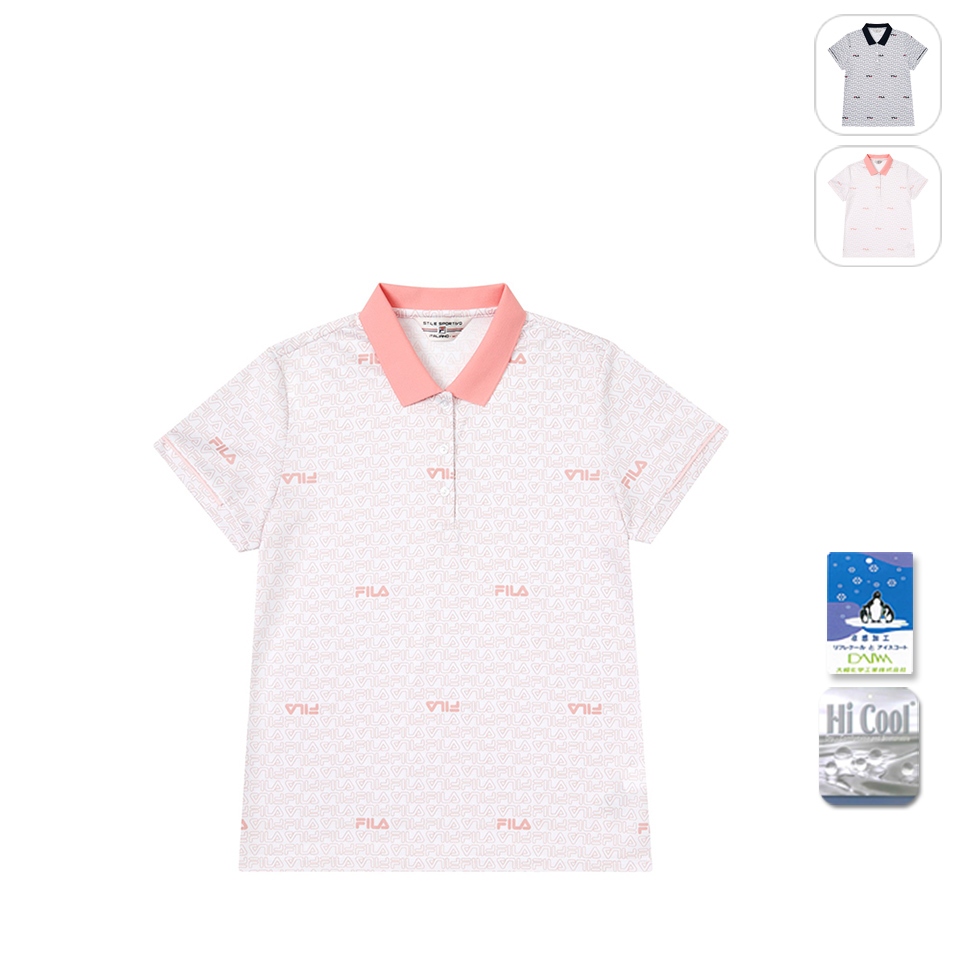 【FILA】女性 滿版LOGO 吸濕排汗 短袖POLO衫-粉紅 5POY-1724-PKXL|2XL|S|M|LT-shirtsFILA官方直營店