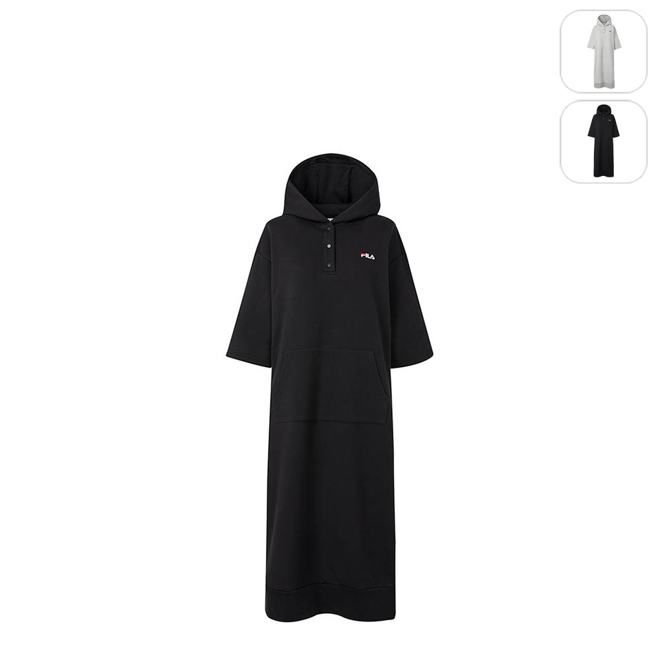 【FILA】女性 針織連帽洋裝-黑色 5DRY-1441-BKS|M|L|XLBottomsFILA官方直營店