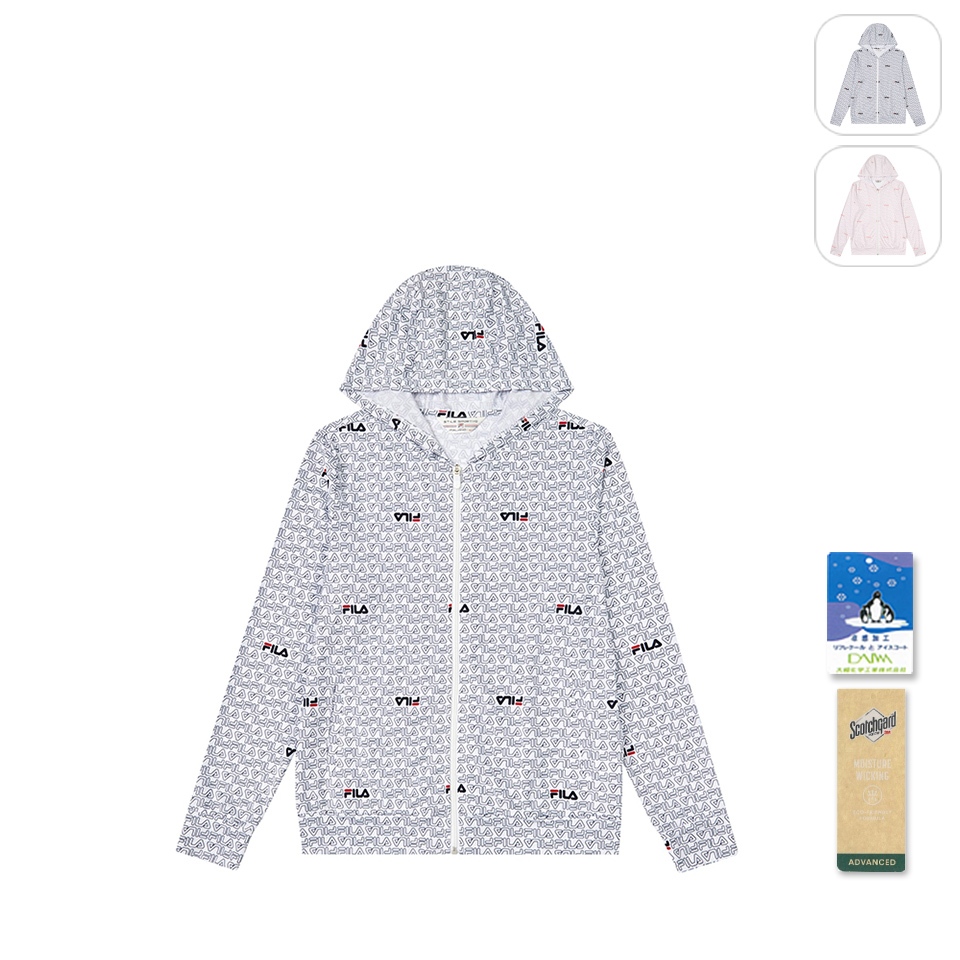 【FILA】女性 滿版LOGO 吸濕排汗 針織連帽外套-丈青 5JKY-1725-WTL|XL|2XL|S|MJacketsFILA官方直營店
