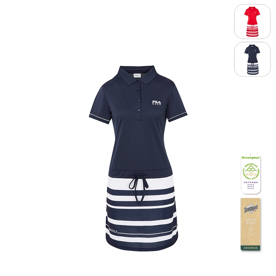 【FILA】女性 GOLF 高爾夫 吸濕排汗 短袖條紋洋裝-丈青 5DRY-2138-NVS|M|L|XLT-shirtsFILA官方直營店
