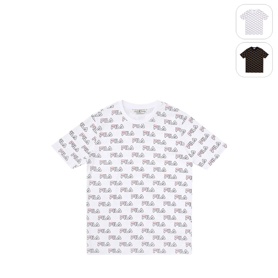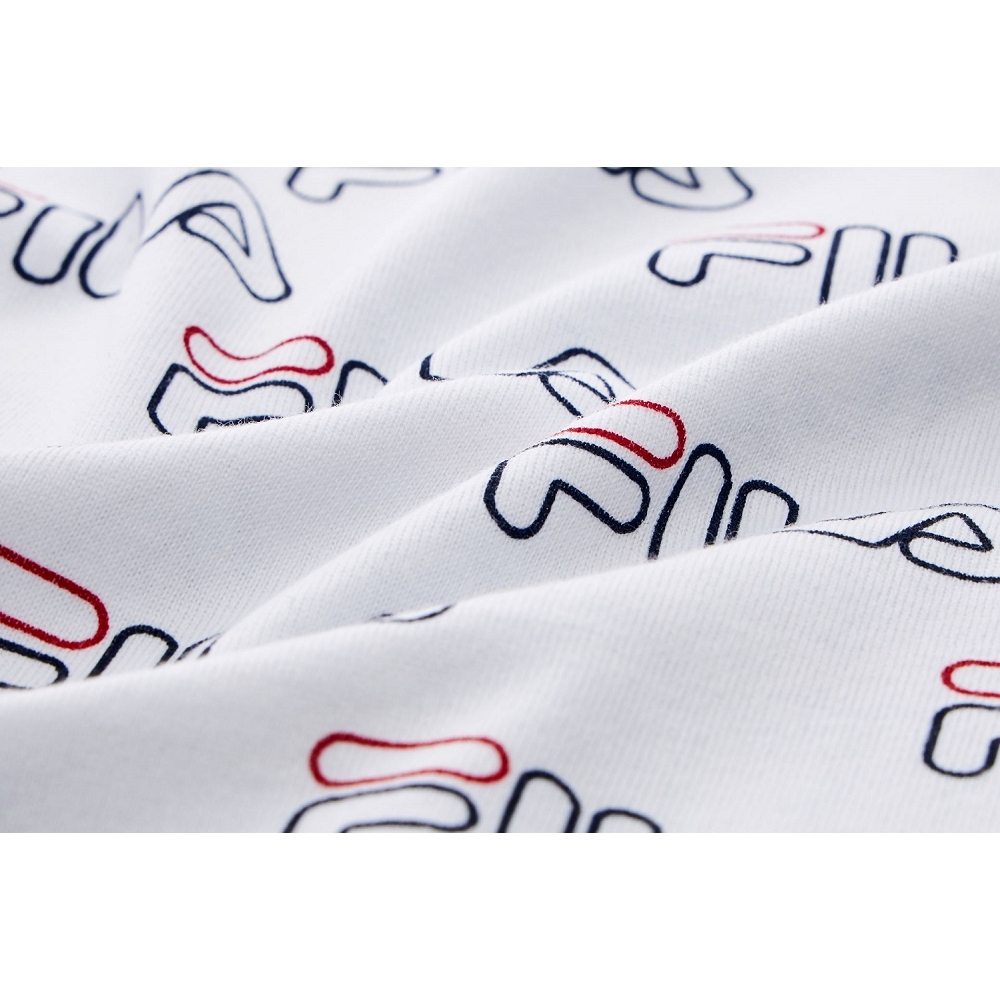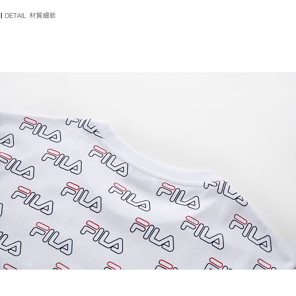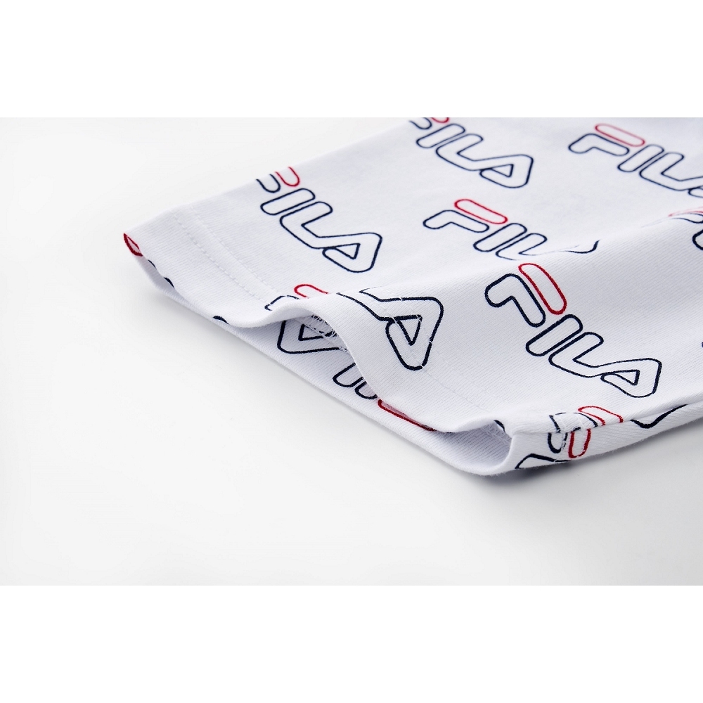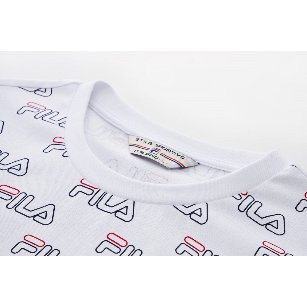 【FILA】中性 滿版LOGO 短袖 純棉圓領T恤-白色 1TEX-5401-WTS|M|L|XL|2XLT-shirtsFILA官方直營店