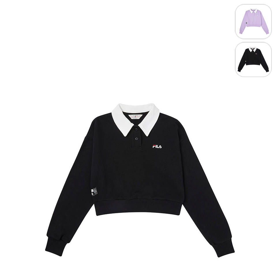 【FILA】女性 長袖 復古短版POLO衫-黑色 5POY-1436-BKXL|S|M|LT-shirtsFILA官方直營店