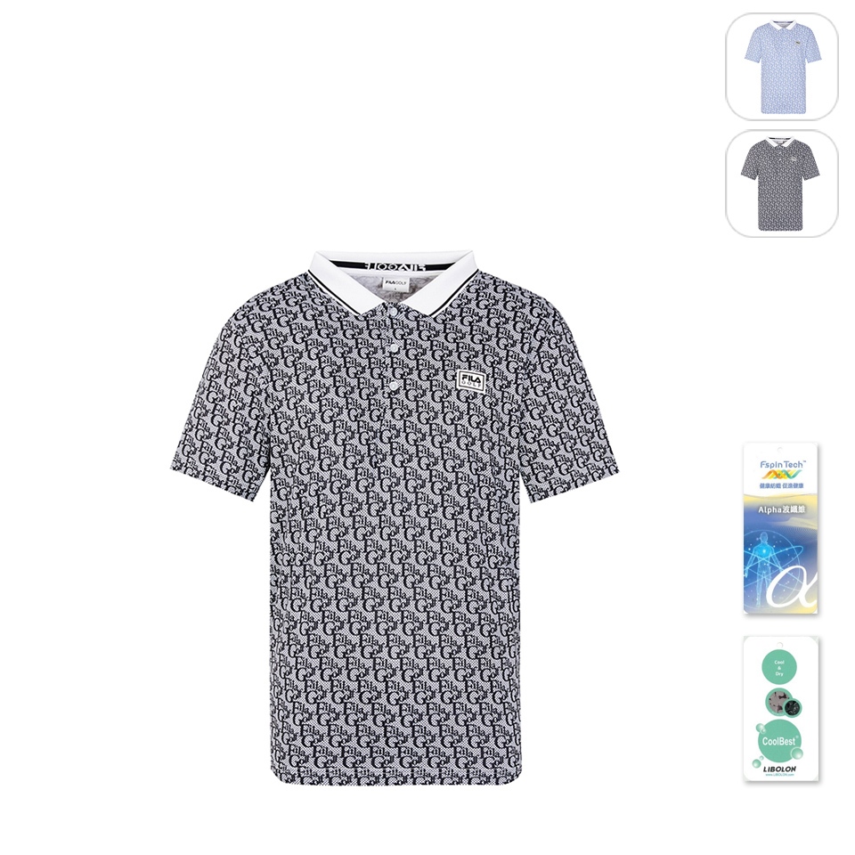 【FILA】男性 GOLF 高爾夫 短袖 老花滿版LOGO POLO衫-黑色 1POY-2000-BKM|L|XL|2XLT-shirtsFILA官方直營店