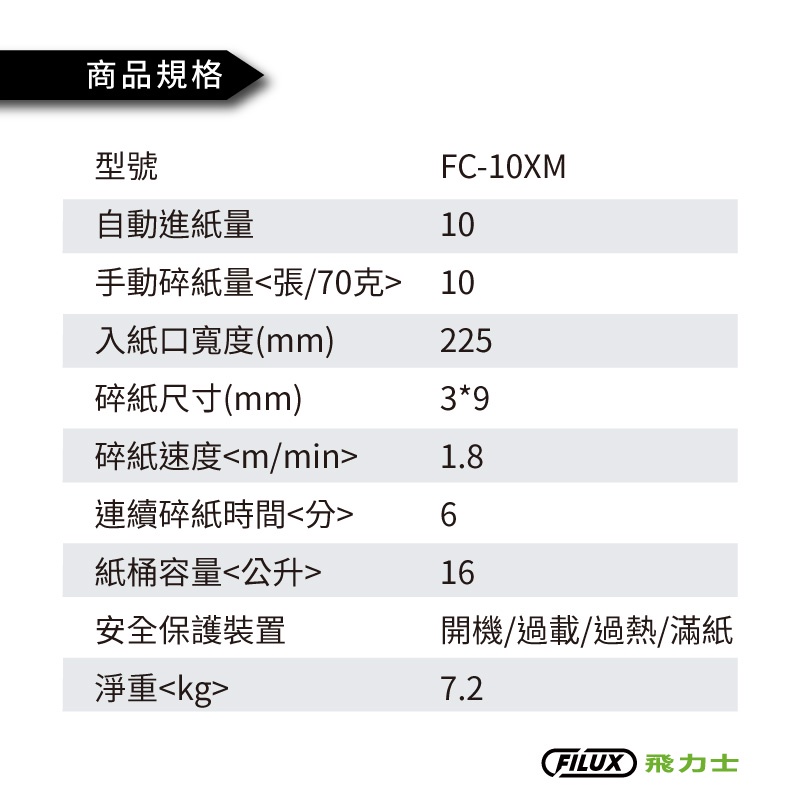 FILUX 飛力士 10張超靜音極細密狀碎紙機 FC-10XMFILUX 飛力士 10張超靜音極細密狀碎紙機 FC-10XMPaper ShreddersFILUX 飛力士
