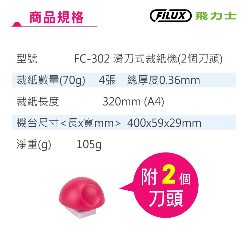 FILUX 飛力士 2個刀頭 A4 滑動式裁紙刀 FC-3021入|2入Pen Knives & Paper CuttersFILUX 飛力士