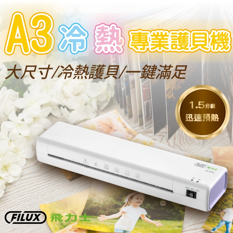 【FILUX 飛力士】 A3冷熱專業護貝機 LM-355HC(薰衣草配色加贈圓角器)+20張高清明亮防靜電A3護貝膠膜【FILUX 飛力士】 A3冷熱專業護貝機 LM-355HC(薰衣草配色加贈圓角器)+20張高清明亮防靜電A3護貝膠膜OthersFILUX 飛力士