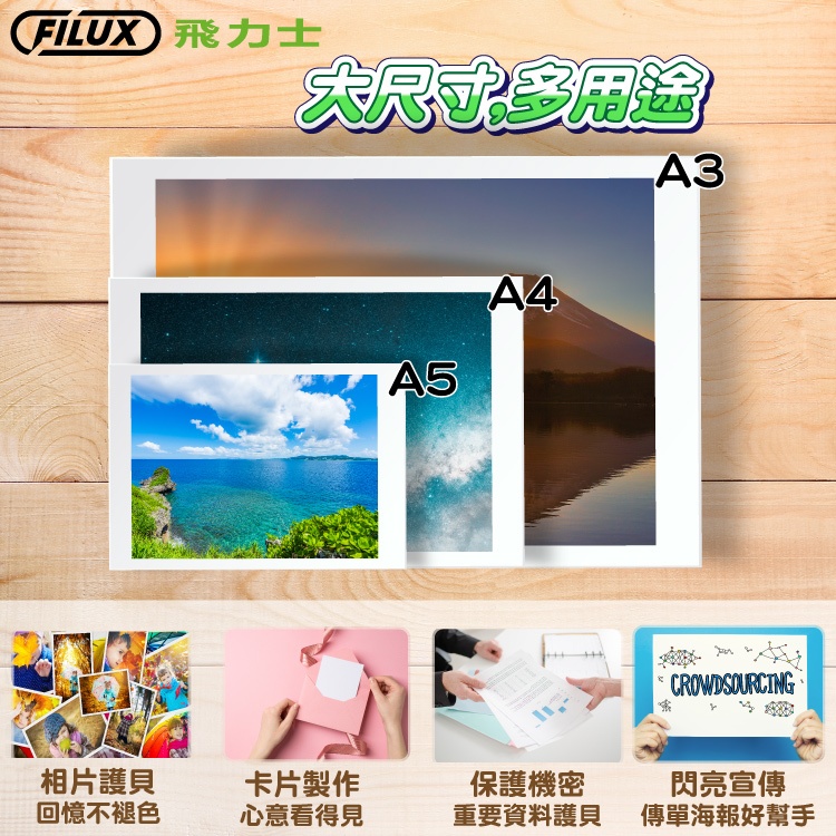 【FILUX 飛力士】高清明亮防靜電A3護貝膠膜 (20張/袋)【FILUX 飛力士】高清明亮防靜電A3護貝膠膜 (20張/袋)OthersFILUX 飛力士