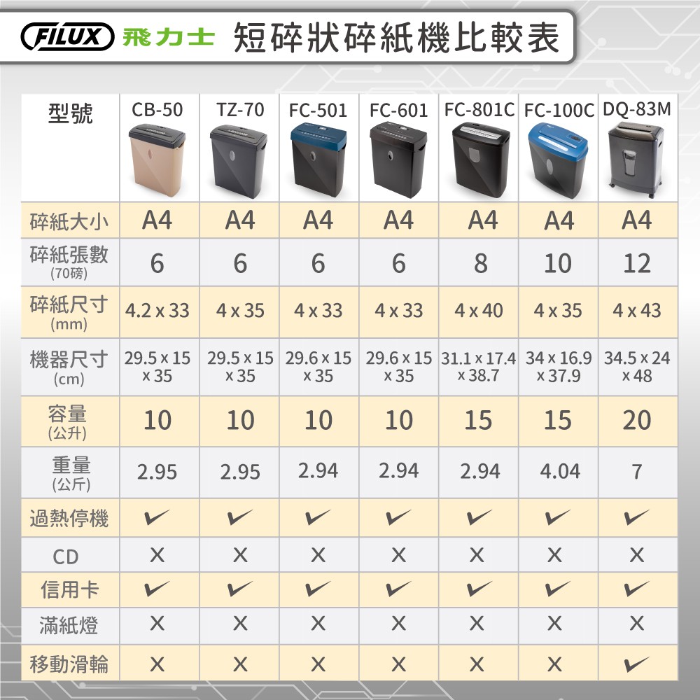 FILUX 飛力士 8張短碎狀專業碎紙機 FC-801C[原廠]FILUX 飛力士 8張短碎狀專業碎紙機 FC-801C[原廠]Paper ShreddersFILUX 飛力士