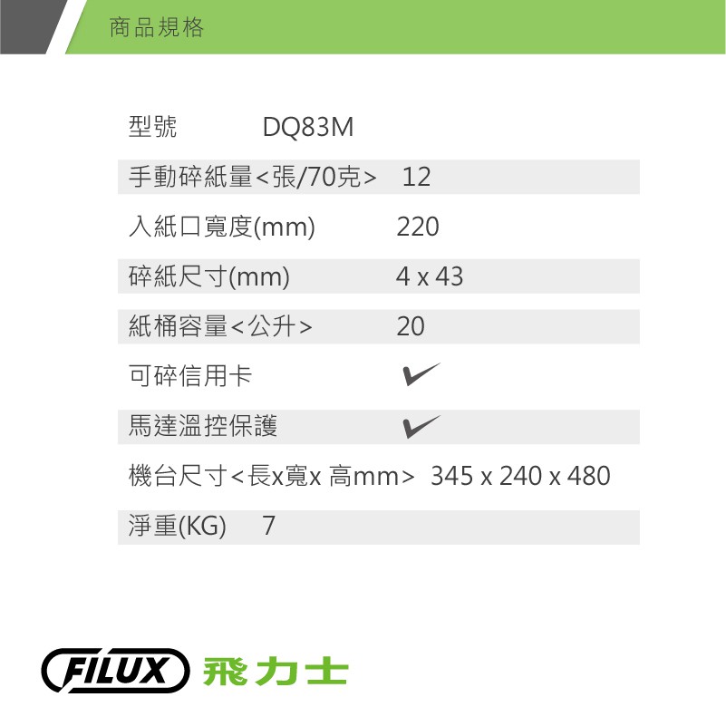 FILUX 飛力士 短碎狀專業碎紙機_DQ-83M (機體一年免費保固) [原廠]FILUX 飛力士 短碎狀專業碎紙機_DQ-83M (機體一年免費保固) [原廠]Paper ShreddersFILUX 飛力士
