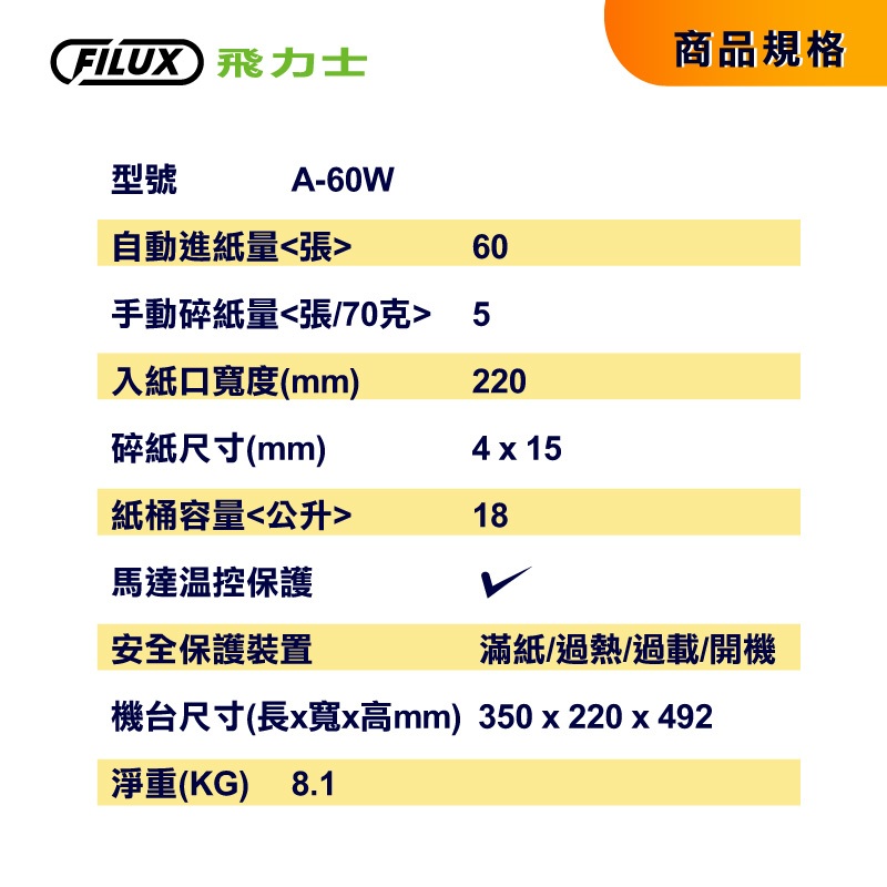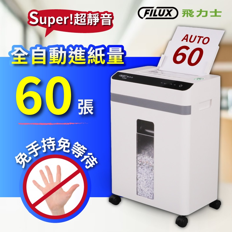 FILUX 飛力士 Super 超靜音高效能免手持免等待全自動碎紙機60張 A-60W [原廠]FILUX 飛力士 Super 超靜音高效能免手持免等待全自動碎紙機60張 A-60W [原廠]Paper ShreddersFILUX 飛力士