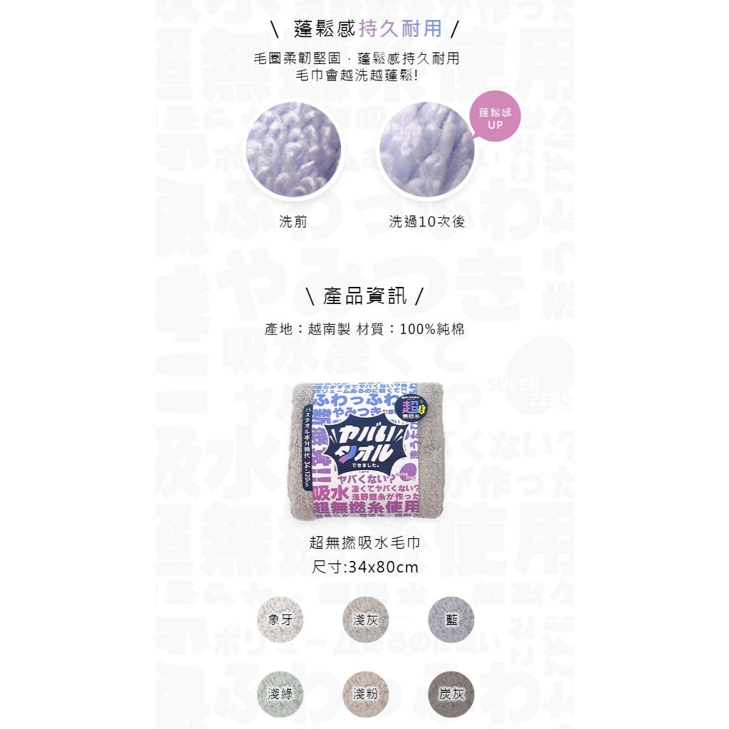 SuperZero 超無撚吸水毛巾 (多色任選)藍色|炭灰|象牙灰|淺綠|淺灰|淺粉Towels & BathrobesFind-things找好物
