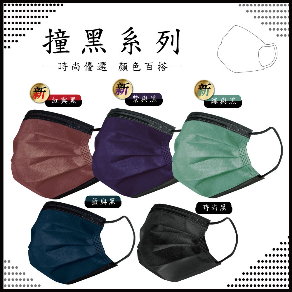 【釩泰】多件優惠 成人撞色醫療平面口罩(50片/盒) 台灣製|雙色 黑色素色|平面口罩 時尚口罩 醫用口罩 MD雙鋼印藍與黑50入/盒|綠與黑50入/盒|紅與黑50入/盒|紫與黑50入/盒|時尚黑50入/盒Medical Gloves & MasksFinetech釩泰醫用口罩生活用品官方旗艦館