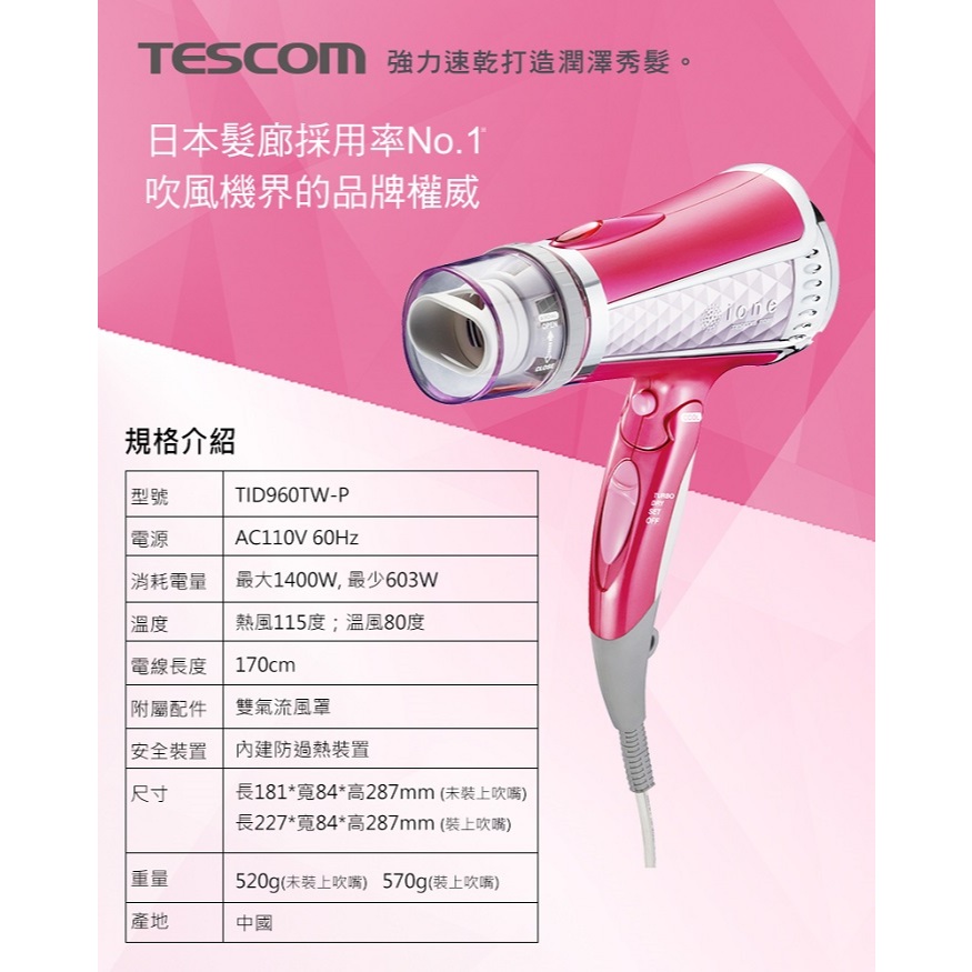 TESCOM 大風量負離子吹風機 TID960TW(粉色) 【限量福利品】TESCOM 大風量負離子吹風機 TID960TW(粉色) 【限量福利品】Hair ToolsFind-things找好物