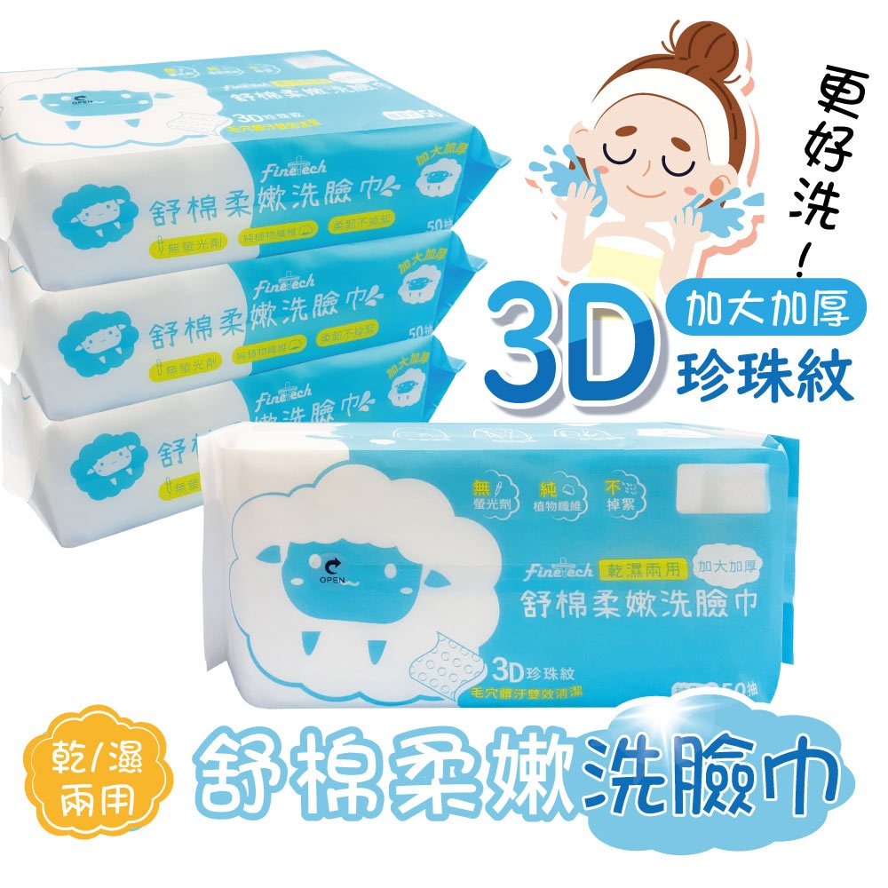 【釩泰4包$180】舒棉柔嫩洗臉巾 50抽 加大加厚 乾濕兩用 一次性潔面巾 抽取式 純植物纖維 無螢光劑 不掉絮舒棉柔嫩洗臉巾50抽(加大加厚)(單包)Towels & BathrobesFinetech釩泰醫用口罩生活用品官方旗艦館