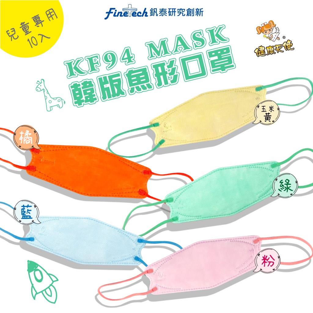 【健康天使/ 2包100元】即期促銷 兒童 4D立體口罩醫療口罩(10片/袋) KF94 韓版魚形 醫用口罩KF94兒童-粉10入|KF94兒童-藍色10入|KF94兒童-綠10入|KF94兒童-玉米黃10入|KF94兒童-橘橙10入Medical Gloves & MasksFinetech釩泰醫用口罩生活用品官方旗艦館