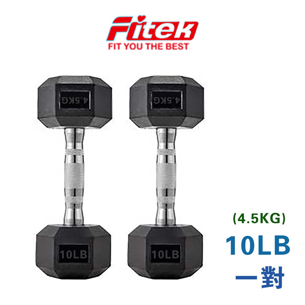 商用六角包膠啞鈴10LB 10磅 實重4.5KG(近4.5公斤啞鈴)可摔啞鈴【Fitek健身網】10LB*2支Fitness EquipmentFitek健身網🏋🏻