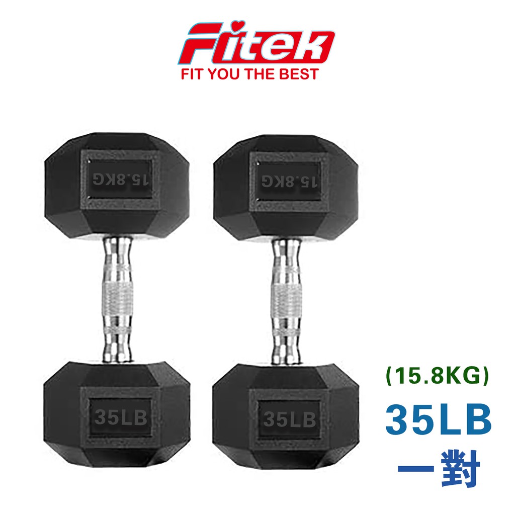 【Fitek健身網】商用六角包膠啞鈴 35LB 單支35磅 實重約15.8KG(近16KG啞鈴) 六角啞鈴 可摔啞鈴35LB*2支|35LB*1支Fitness EquipmentFitek健身網🏋🏻