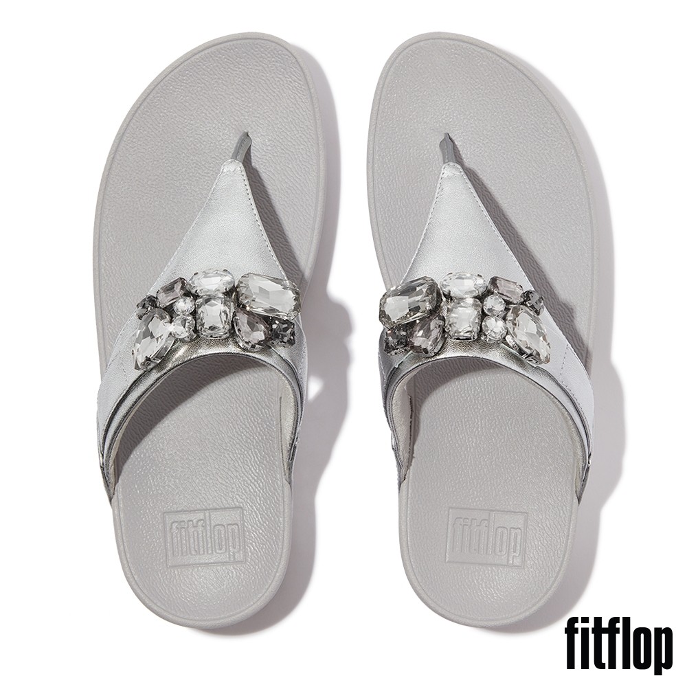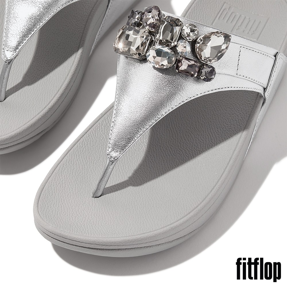 【FitFlop】LULU 華麗寶石金屬皮革夾腳涼鞋-女(銀色)US6|US7|US8|US9|US5Flip FlopsFitFlop官方旗艦店