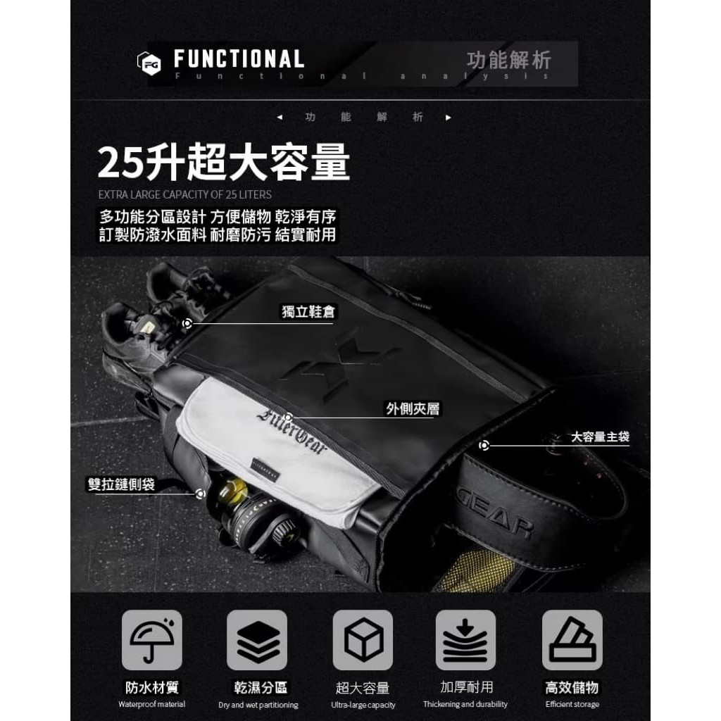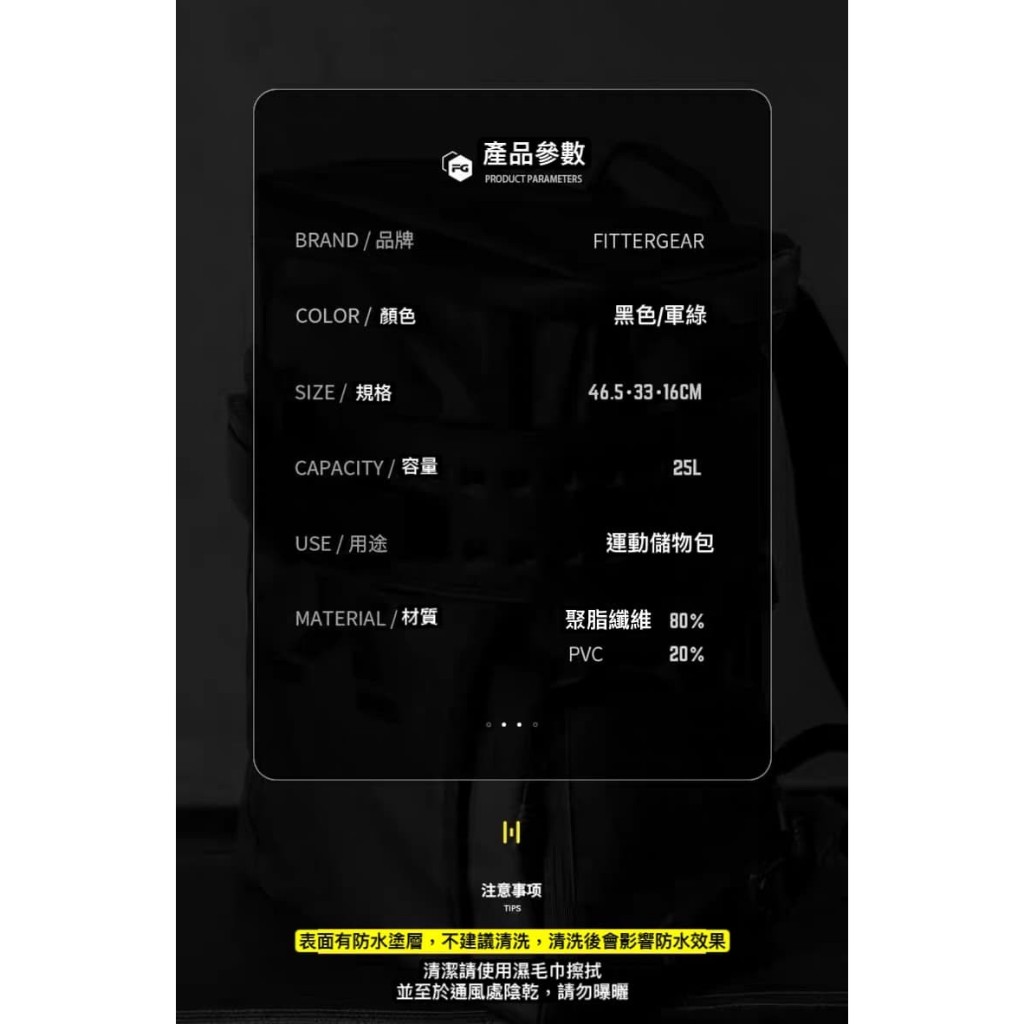 【FITTERGEAR】防潑水雙肩大背包 黑色/軍綠(運動包 收納 固定腰帶 胸帶設計 防水 耐磨 防污 多功能)灰色|軍綠|黑色|白色Shoe BagsFittergear Taiwan