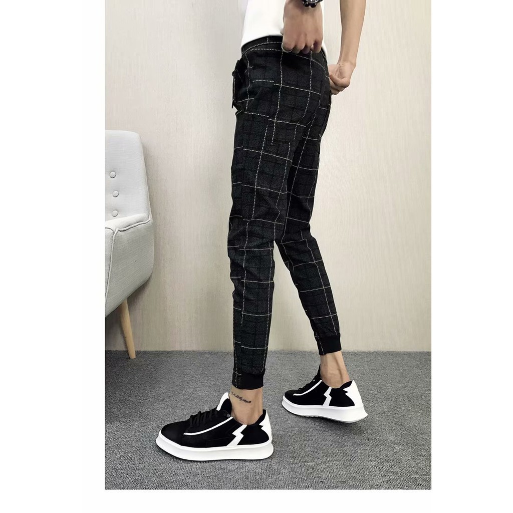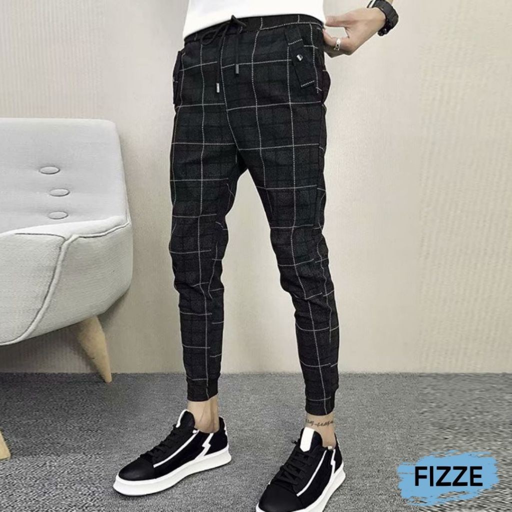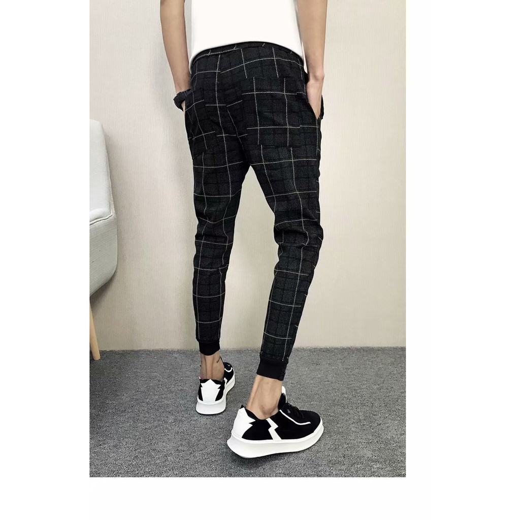 『熱賣中』格子褲 青年收口小腳休閒褲 束腳格子長褲 九分縮口格紋褲(LPM105)【FIZZE】黑色,M|黑色,L|黑色,XL|黑色,2XLPantsFIZZE