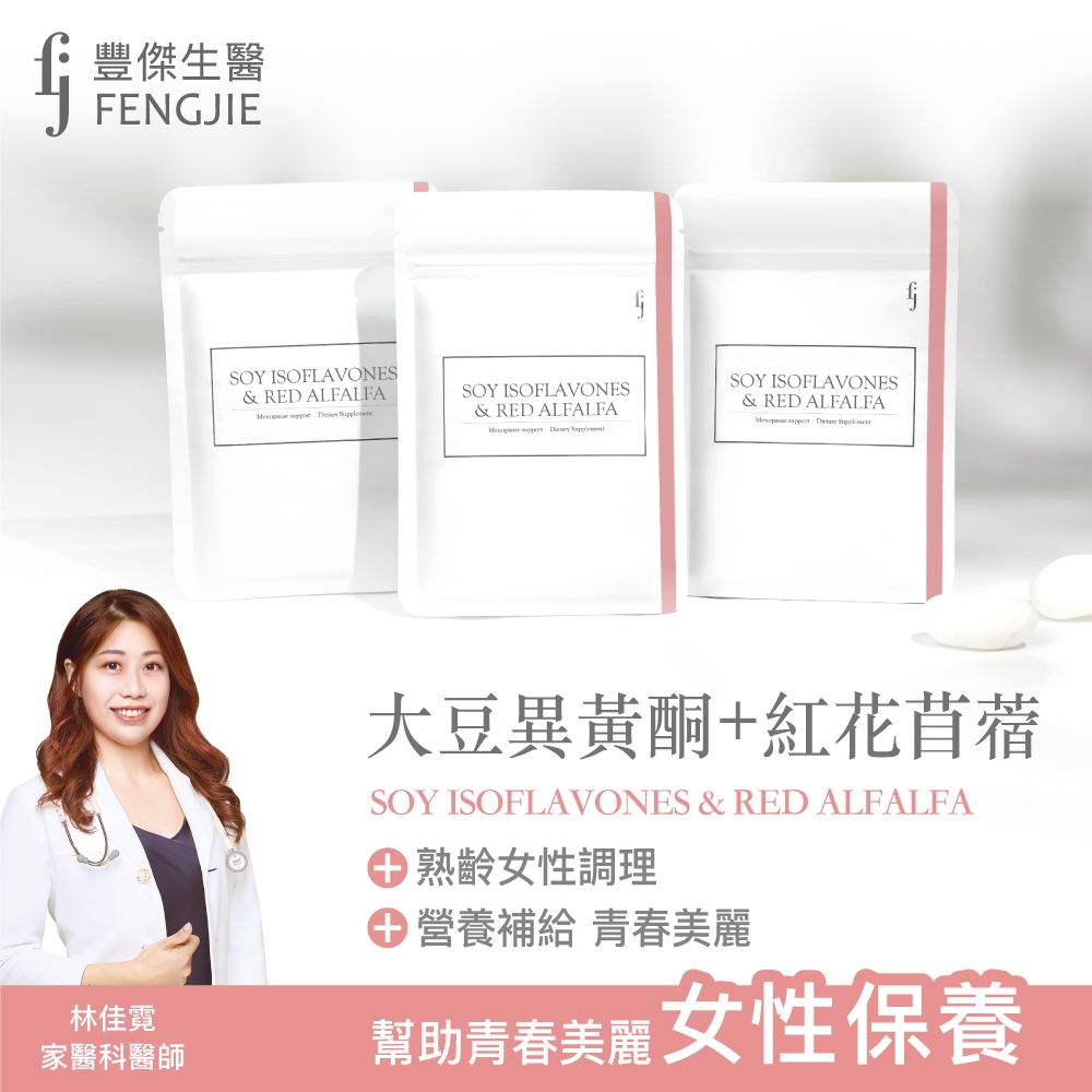 【FJ豐傑生醫】大豆異黃酮+紅花苜蓿30顆/袋-熟齡女性調理聖物大豆異黃酮,熟齡營養補給x青春美麗30顆/袋Beauty SupplementsFJ豐傑生醫