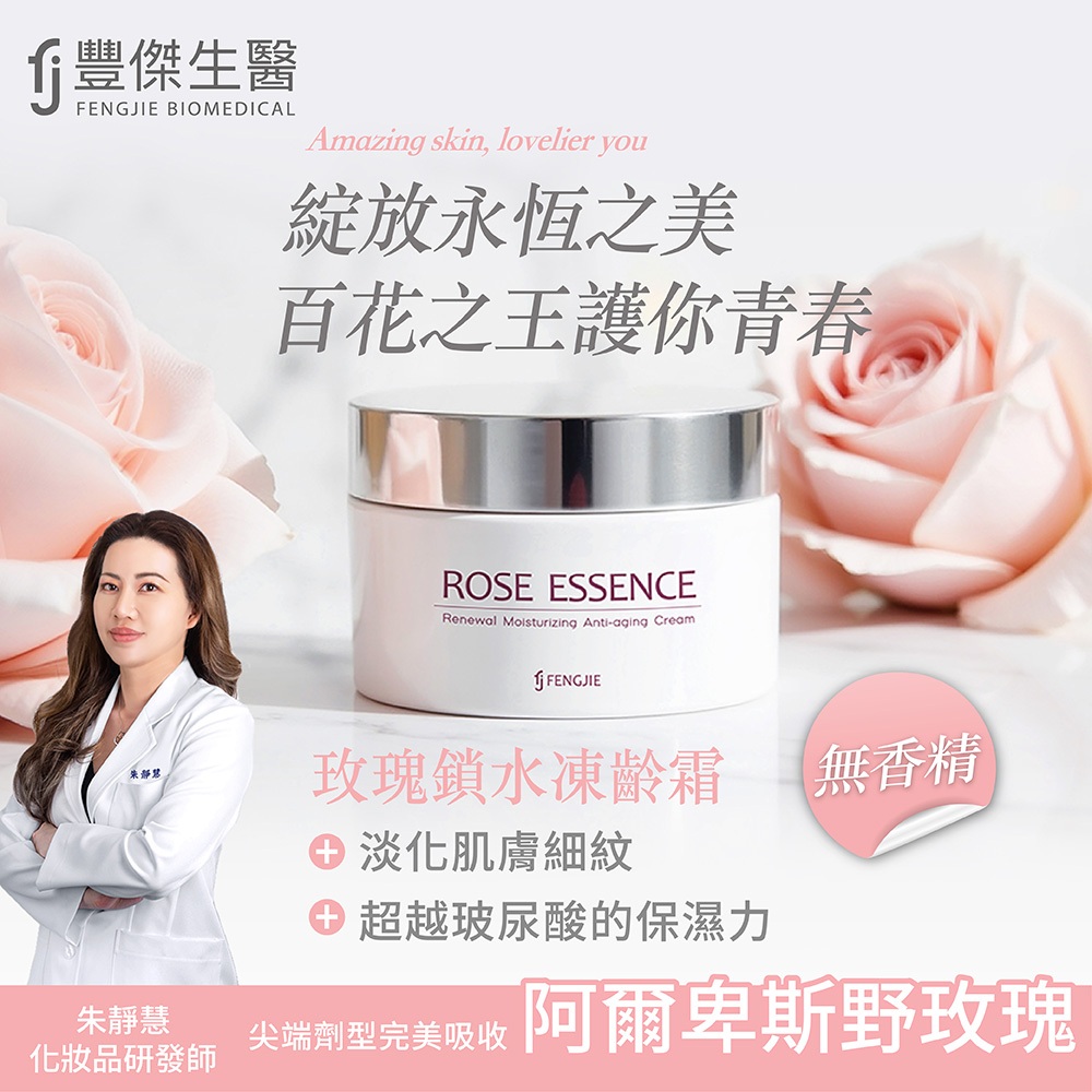 【FJ豐傑生醫】玫瑰鎖水凍齡霜60ml/瓶-超過1萬朵野玫瑰精粹,凍齡玫瑰霜。鎖水抗老X延緩肌膚衰老60ml/瓶Facial MoisturizerFJ豐傑生醫