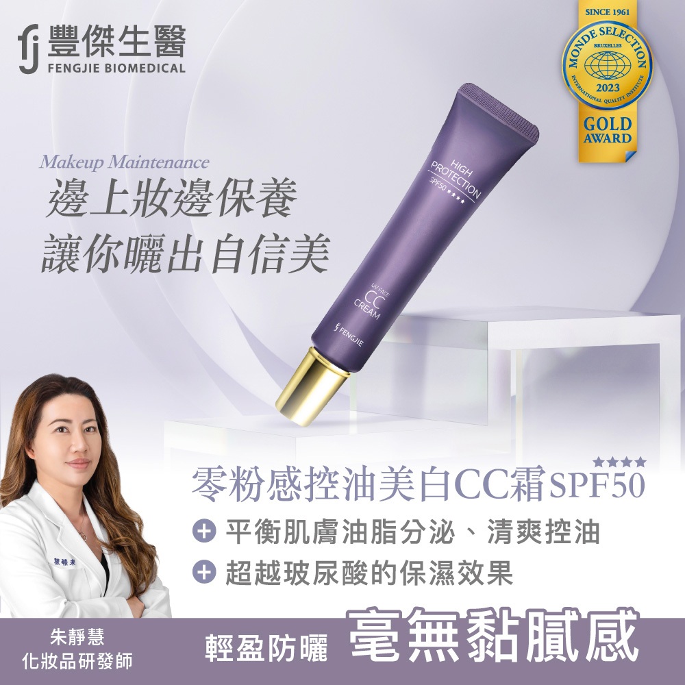 【FJ豐傑生醫】零粉感控油美白CC霜SPF50★★★★30ml/支-24小時不脫妝,多效CC霜。寬頻防曬x膚色矯正美白30ml/支FaceFJ豐傑生醫