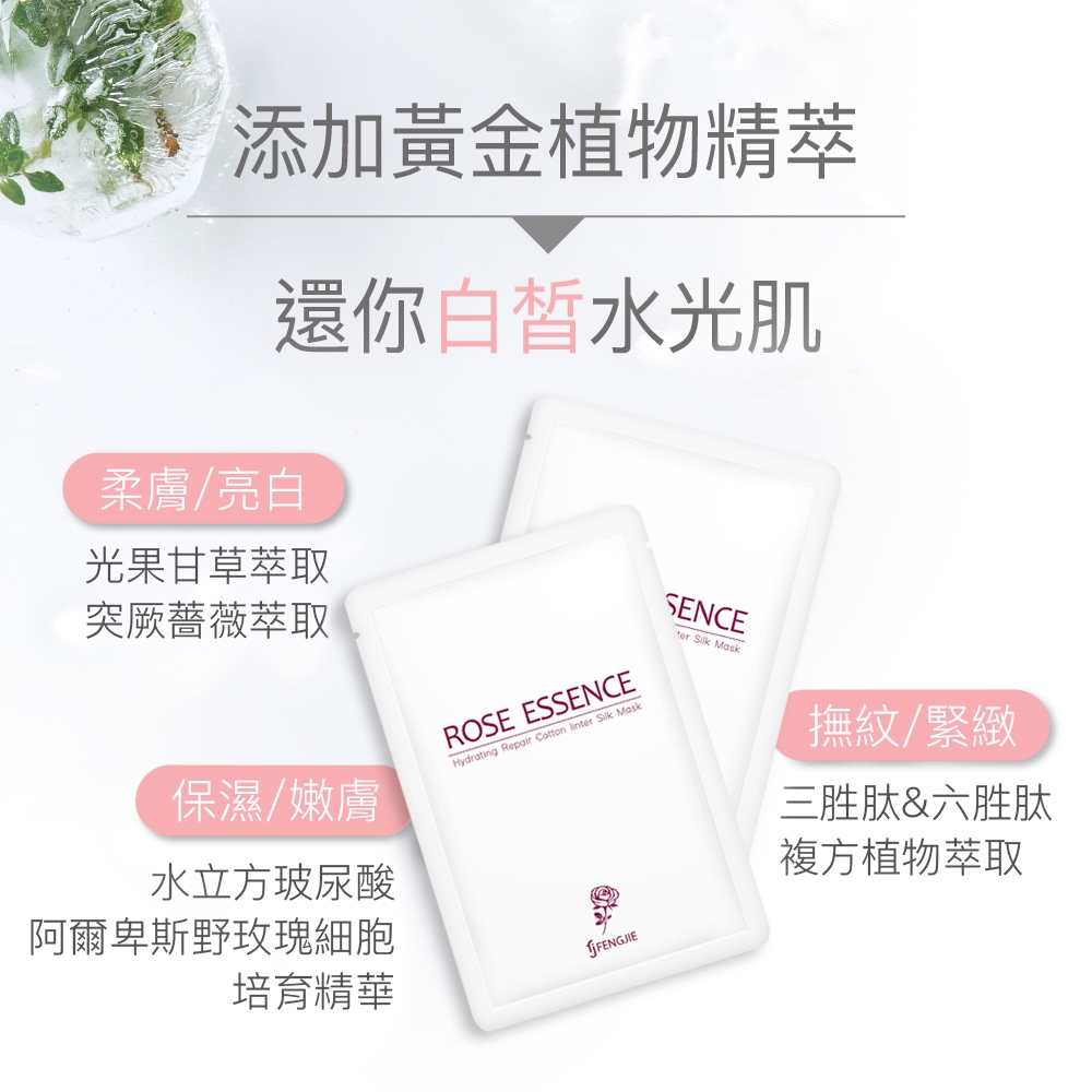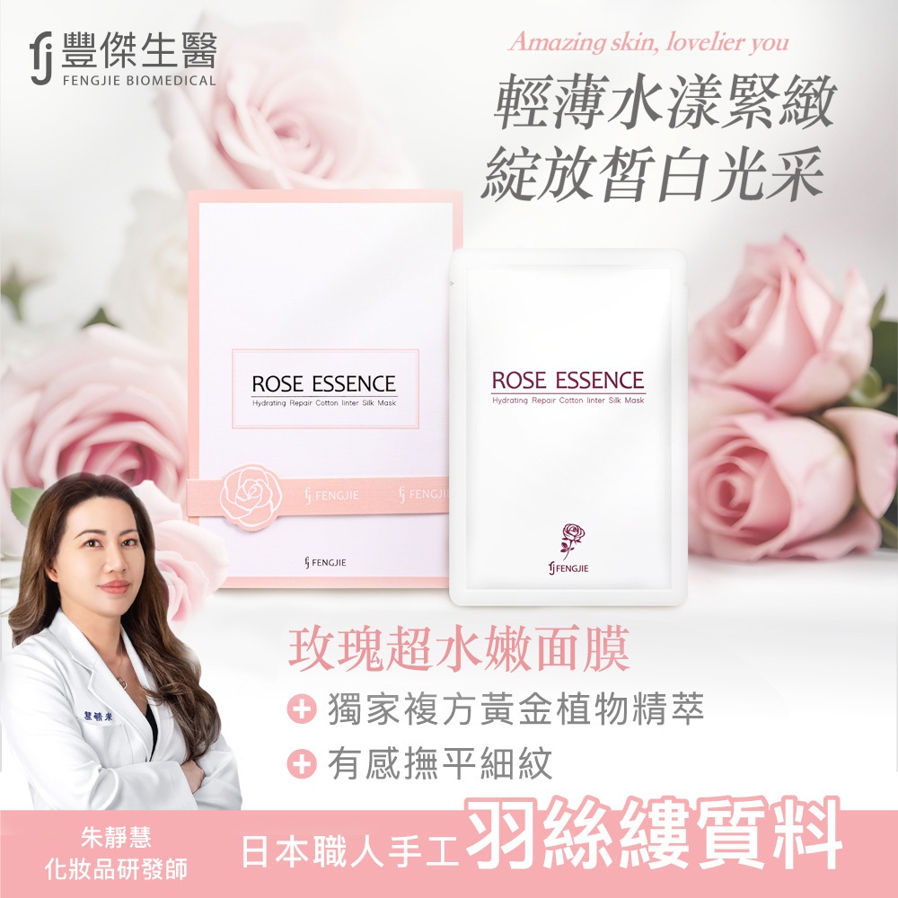 【FJ豐傑生醫】玫瑰超水嫩面膜30ml/單片-採用日本手工藝100%棉籽絨面膜,不黏膩不亂滴、清爽好吸收30ml/片Face Mask & PacksFJ豐傑生醫