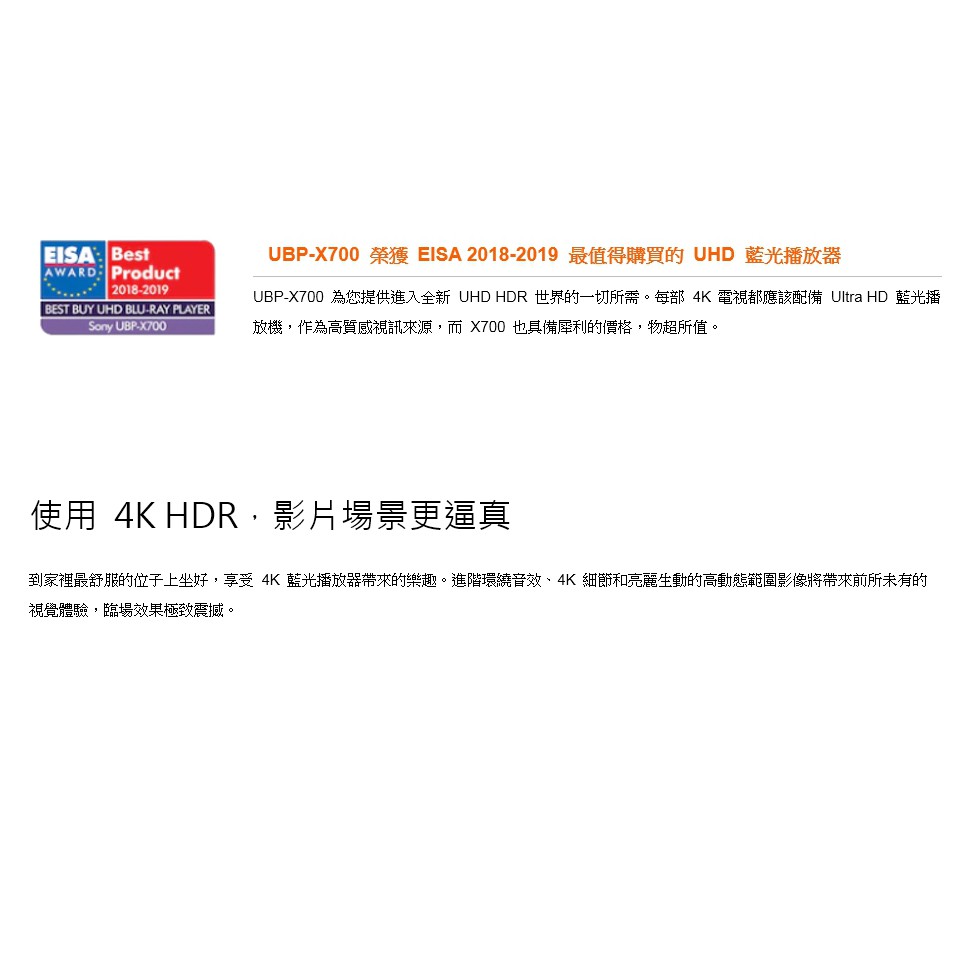 SONY 4K Ultra HD 藍光播放器 UBP-X700(原廠公司貨)