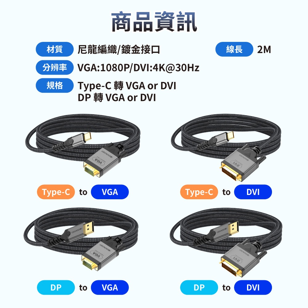 Type-C DP 轉 DVI VGA 連接線 轉接線 螢幕連接線 公轉公 購買前先詳閱商品說明喔Type-c轉DVI 公轉公 2米|Type-c轉VGA 公轉公 2米|DP轉VGA 公轉公 2米|DP轉DVI 公轉公 2米DA量販店