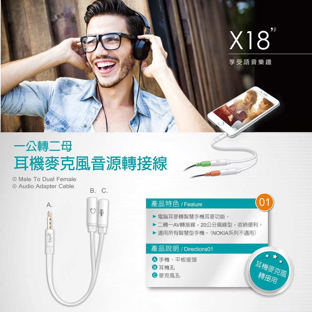 E-books X18一公轉二母耳機麥克風音源轉接線3.5mm-20cmE-books X18一公轉二母耳機麥克風音源轉接線3.5mm-20cmE-books 官方旗艦店